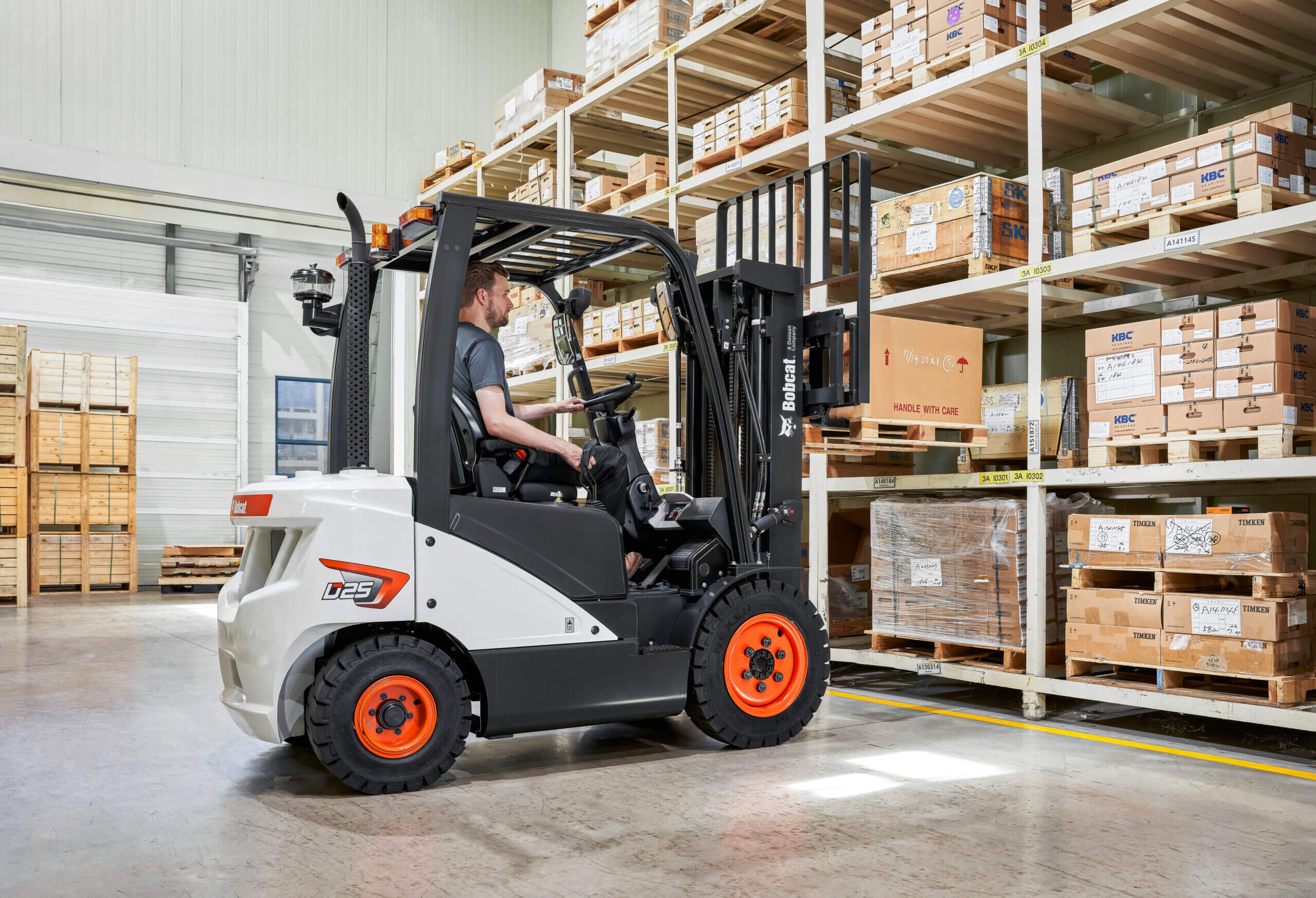 Erleben Sie die Kraft und Präzision der Bobcat-Gabelstapler, die leistungsstark auch die anspruchsvollsten Aufgaben mit Leichtigkeit bewältigen.