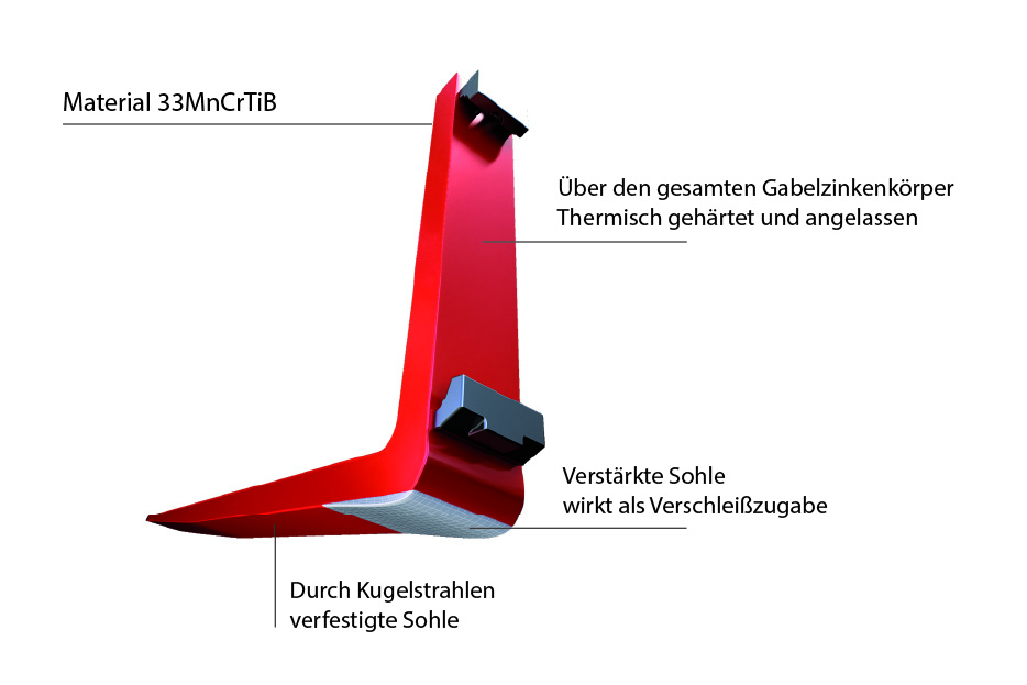 - Kugelstrahlen verdichten den Werkstoff an der Oberfläche, wodurch die Zinkenunterseite in höchstem Maß verschleißresistent wird