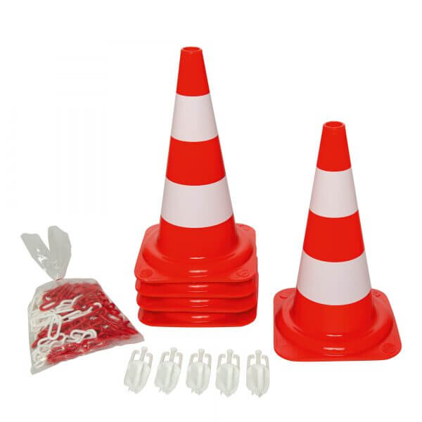 5x Leitkegel (750 mm): Großformatige Pylone für maximale Präsenz.