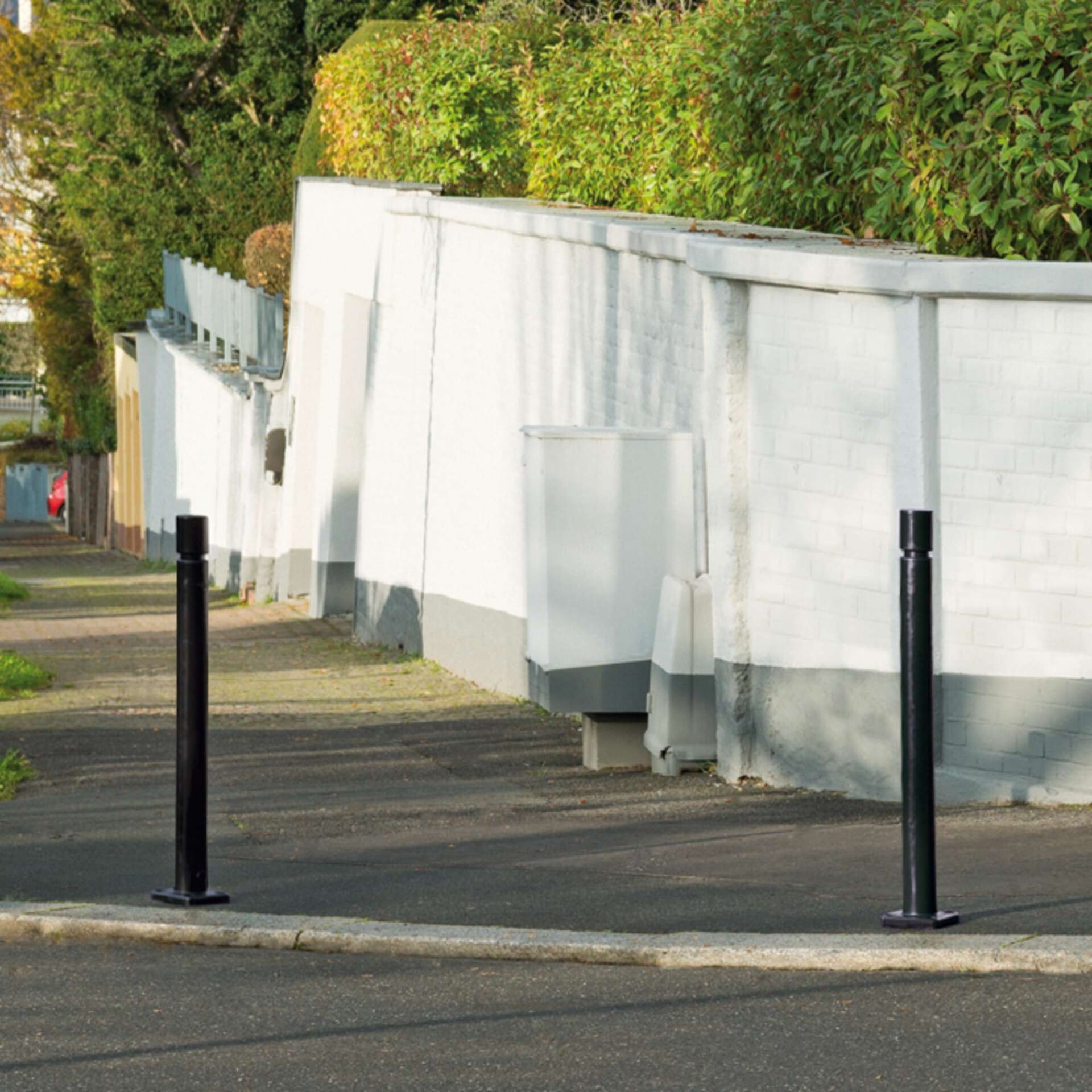 Nimmt Anfahrkräfte auf, schont Fahrzeug und Poller. Besonders geeignet in engen Verkehrsräumen.