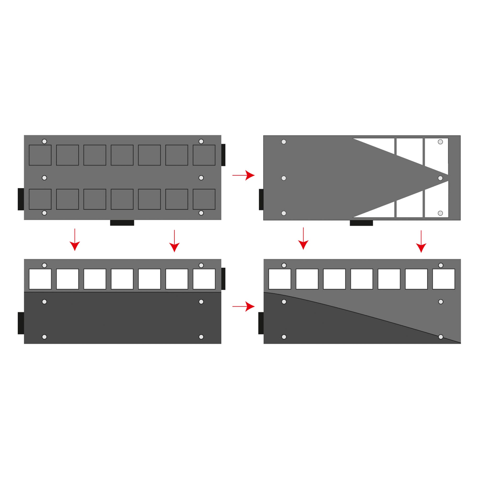 - Modularer Aufbau für flexible Anpassung in Breite und Länge