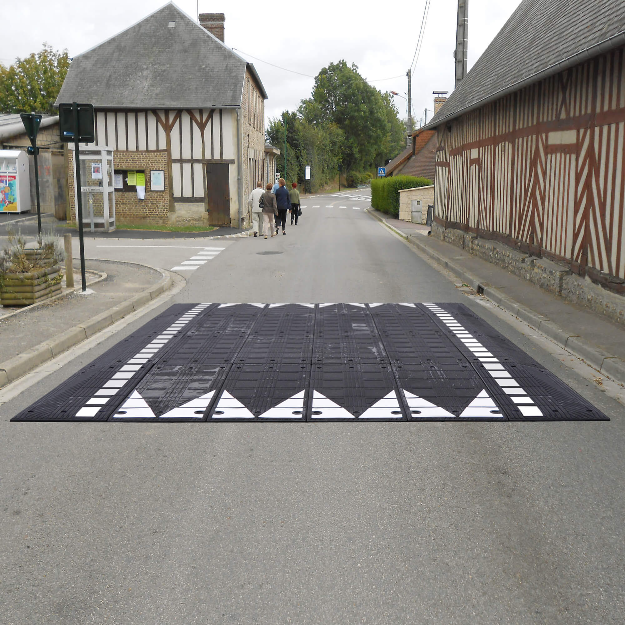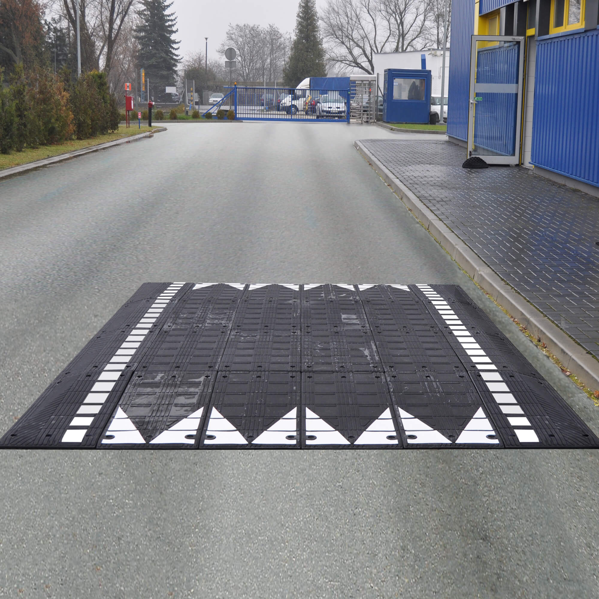 Dank der weiß reflektierenden Warnflächen in Dreiecks- und Rechteckform ist das Plateau auch bei schlechten Lichtverhältnissen oder Nässe gut sichtbar. Dies erhöht die Sicherheit für alle Verkehrsteilnehmer erheblich. Die schwarze Durchfärbung des Materials sorgt zudem für eine dauerhaft hochwertige Optik ohne Farbabrieb.