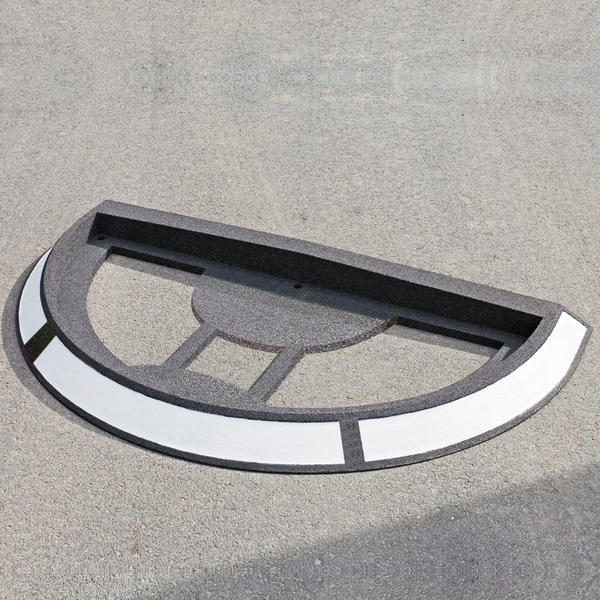 Jede Verkehrsinsel besteht aus einem Außenring, der mit der Fahrbahn verschraubt wird und zwei Innenteilen.