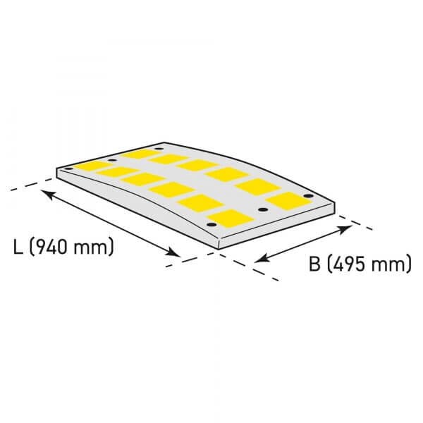 Die SafeRide Fahrbahnschwelle ermöglicht ein angenehmes Überfahren, ohne auf das gewünschte, deutliche Reduzieren der fahrdynamischen Wirkung zu verzichten. Erreicht wird dies durch eine auf 940 mm gestreckte Überfahrlänge und einer weniger stark ansteigenden Anrampung – verglichen mit herkömmlichen „Rüttelschwellen“.