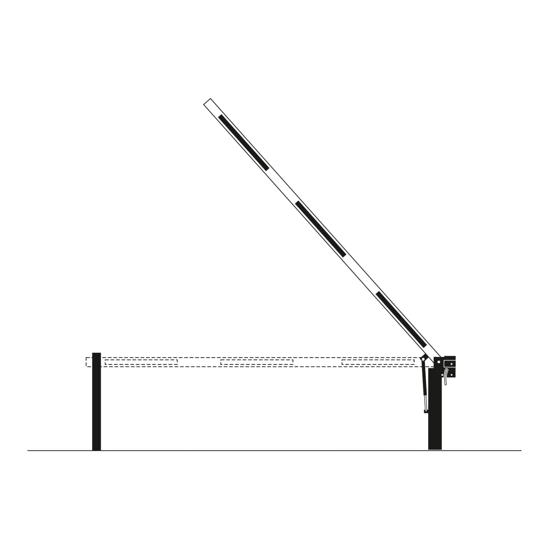 Systemschranke mit integrierter Gasdruckfeder zum Aufdübeln mit Bodenplatte.