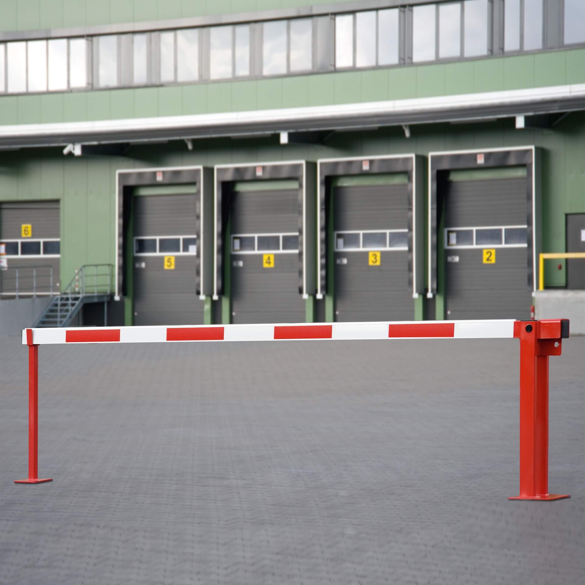 Systemschranke mit integrierter Gasdruckfeder zum Aufdübeln mit Bodenplatte