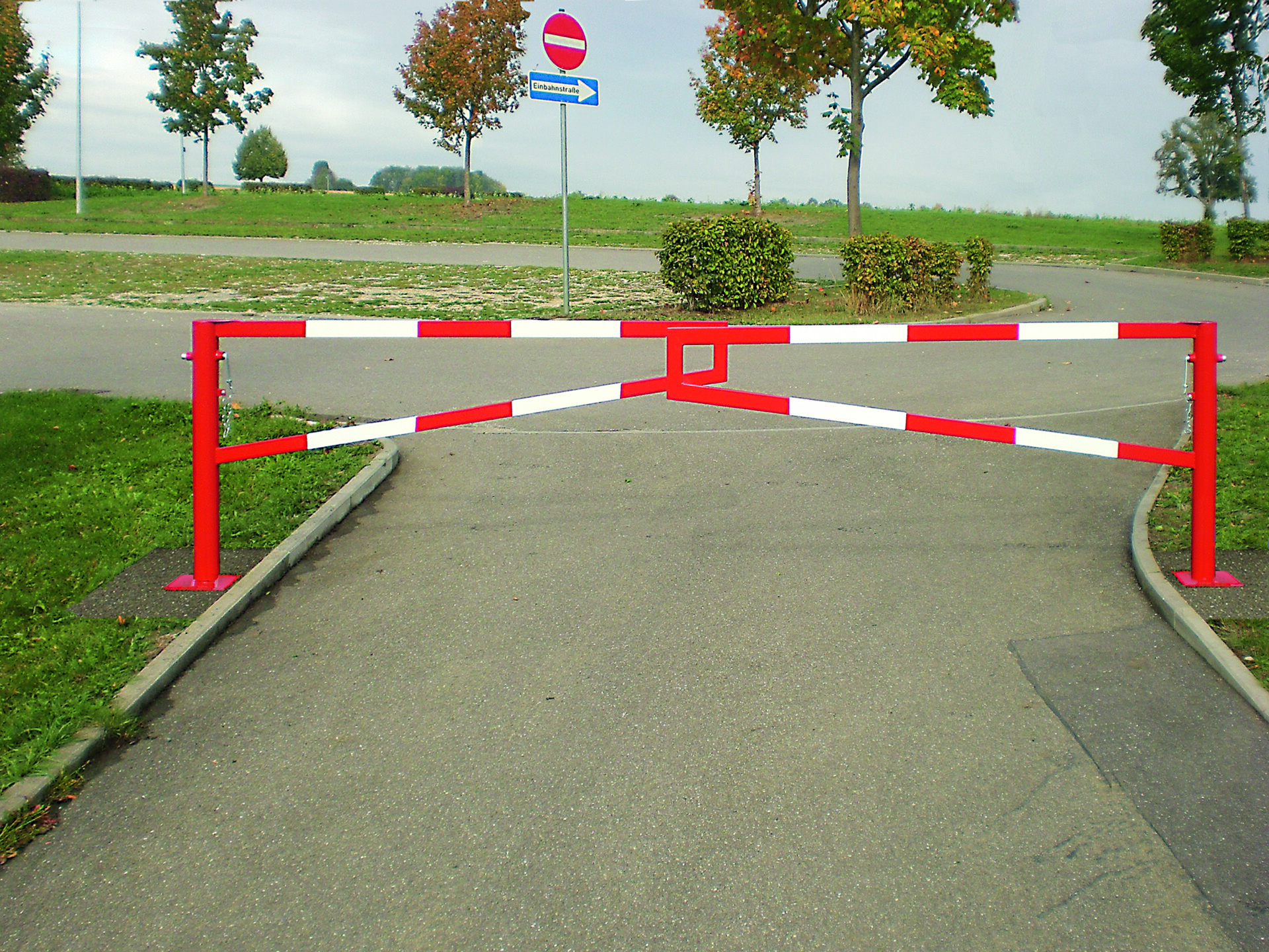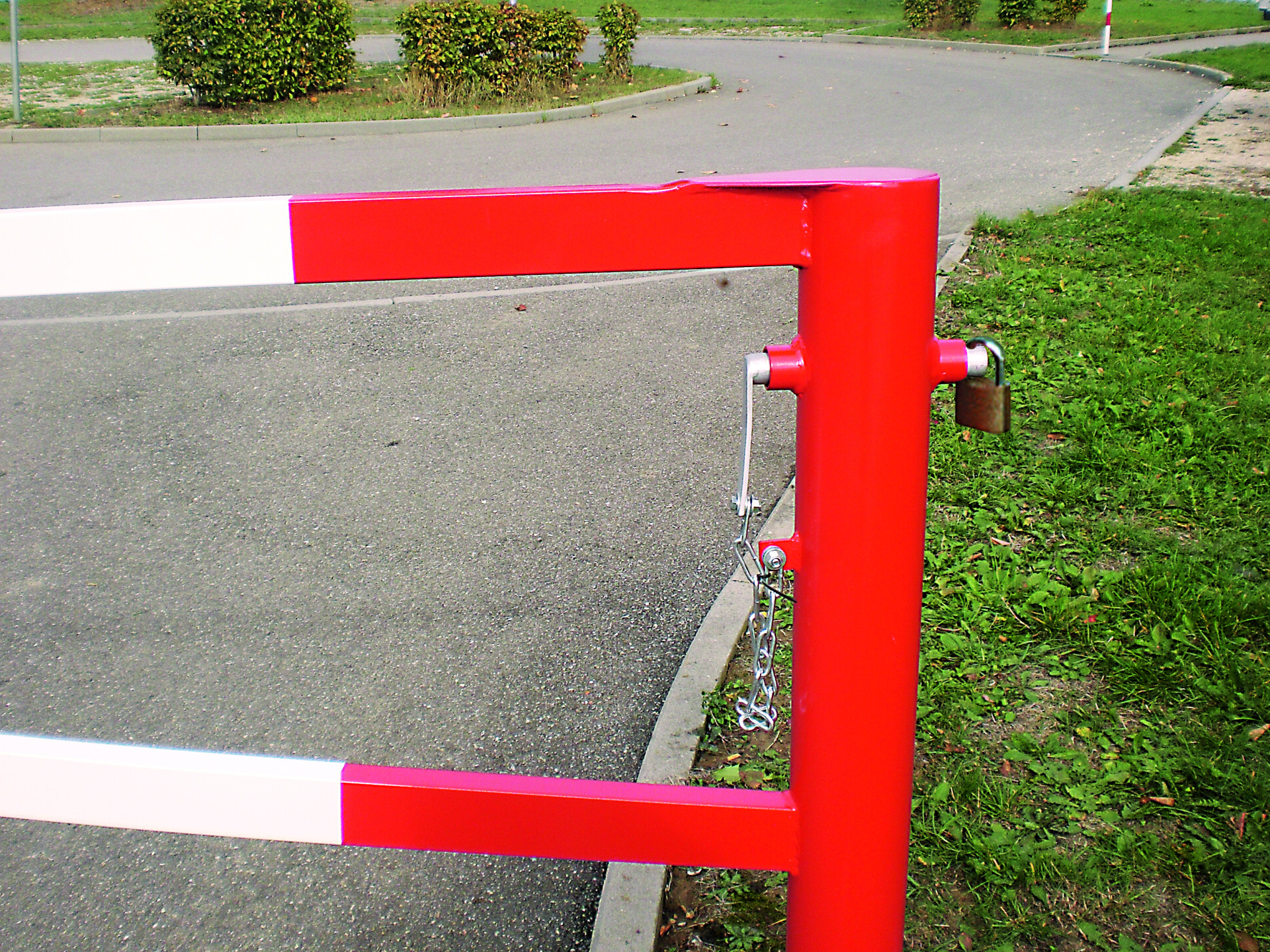 Gatterschranke aus Gütestahl, feuerverzinkt und rot lackiert zum Einbetonieren.