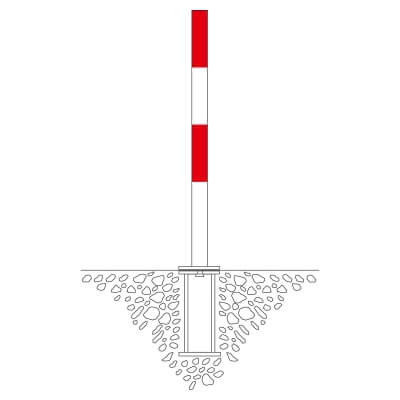 Der Pfosten hat eine Gesamthöhe von 1330 mm, wovon 1000 mm als Sichthöhe über Flur bestehen bleiben und 330 mm sicher in der Bodenhülse verankert werden. Die Befestigung erfolgt durch das Einbetonieren der mitgelieferten Hülse im Untergrund. Mit einem Gewicht von 7,30 kg ist der Pfosten stabil genug für den harten Außeneinsatz, lässt sich aber dennoch kräfteschonend manuell entnehmen. In der Ausführung ohne Kettenösen bietet er eine besonders klare und minimalistische Optik.