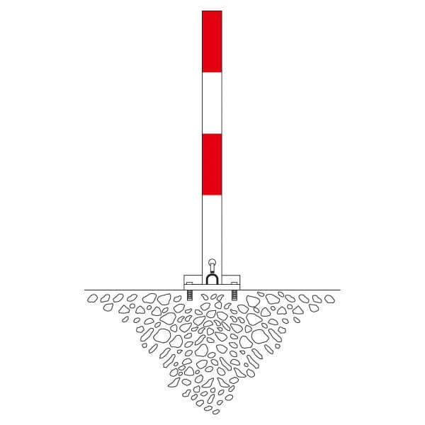 Im Gegensatz zur Variante zum Einbetonieren wird dieses Modell mittels einer massiven Bodenplatte (140 x 160 x 10 mm) direkt auf dem Untergrund befestigt. Dies macht den SESAM A zur idealen Wahl für Standorte, an denen Erdarbeiten nicht möglich oder nicht erwünscht sind, wie etwa in Parkhäusern, auf bereits asphaltierten Flächen oder auf Betonebenen. Trotz der Montage zum Aufdübeln bietet der Pfosten durch die vierfache Verankerung der 10 mm starken Stahlplatte eine exzellente Standfestigkeit gegen unbefugtes Umlegen oder leichte Anfahrschäden.