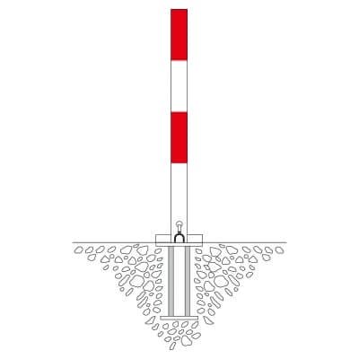 Der SESAM A Sperrpfosten wird mittels der mitgelieferten Bodenhülse fest im Untergrund einbetoniert. Dies garantiert eine hohe Standfestigkeit auch bei mechanischer Beanspruchung. Durch den Verzicht auf Ösen eignet sich dieses Modell besonders für Einzelabsperrungen, bei denen keine Kettenverbindungen benötigt werden.