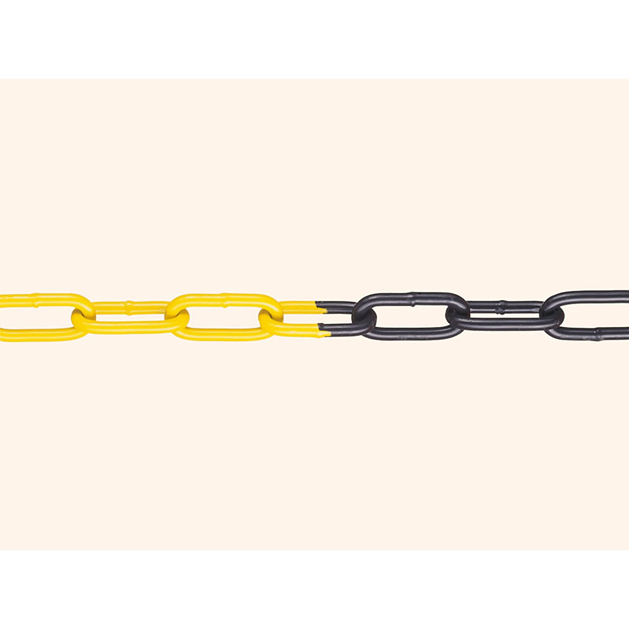 FERRO-SIGNAL 6 Absperrkette, 6 mm Stahl, verzinkt und kunststoffbeschichtet. Schwarz-gelbe Warnkette, 15 m Bundlänge, hohe Belastbarkeit und Sichtbarkeit.