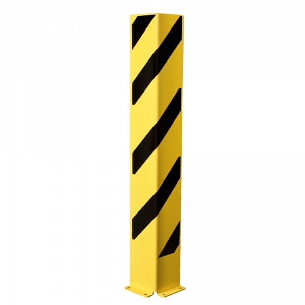 Anfahrschutz-Winkel aus Stahl, gelb kunststoffbeschichtet, mit schwarzen Streifen.