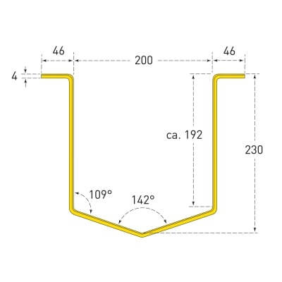 Stahlprofil in U-Form zur Wandmontage. Mit 4 Schlüsselloch-Bohrungen für einfaches Aufhängen: Anzeichnen, Dübel setzen, einhängen, festziehen.
