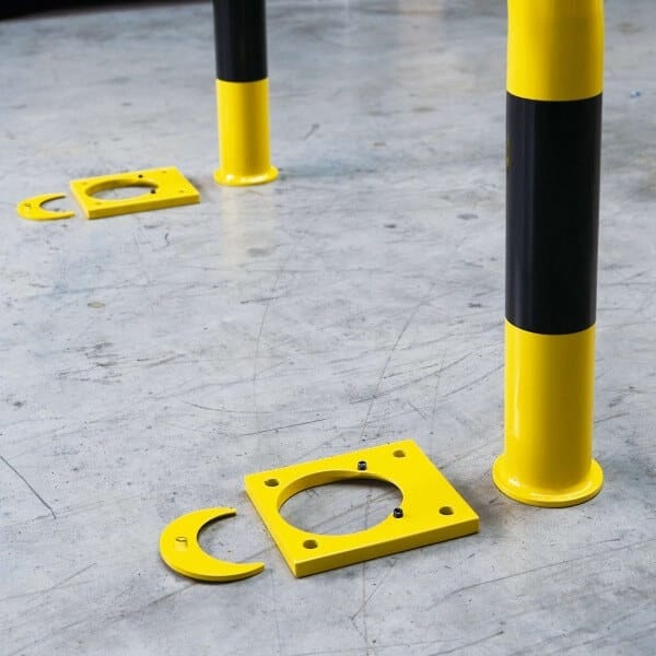 Sperrt bzw. gibt vorübergehend Zuwege und Regalgänge frei. Erspart das aufwändige Demontieren von festen Rammschutz-Bügeln.