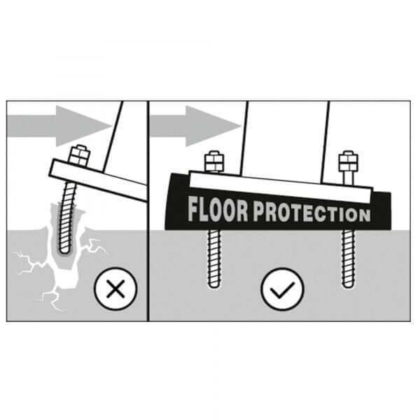 Die Standpfosten der BLACK BULL Rammschutz-Geländer werden mit einem UV-beständigen, dauerelastischen Federelement aus Polyurethan ausgerüstet (siehe Zubehör). Das PU-Element absorbiert die auf das Geländer wirkenden Kräfte.