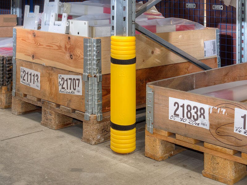 Hochwertiger Rammschutz aus elastischem Polyethylen für Regalstützen.