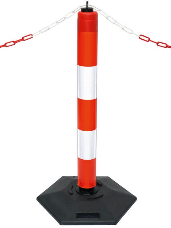 Der Recyclingfuß wird unter den Ketten-Warnständer gelegt und sorgt für sicheren Halt. Die Montage ist unkompliziert und erfordert keine zusätzlichen Werkzeuge. Durch das robuste Material bleibt der Fuß auch bei häufiger Nutzung und wechselnden Witterungsbedingungen stabil.