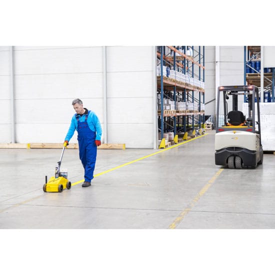 Markierset bestehend aus BODENMARKIERGERÄT PERFEKT NEW STRIPER® und ein Karton a 12 Dosen Bodenmarkierfarbe TRAFFIC EXTRA PAINT®.