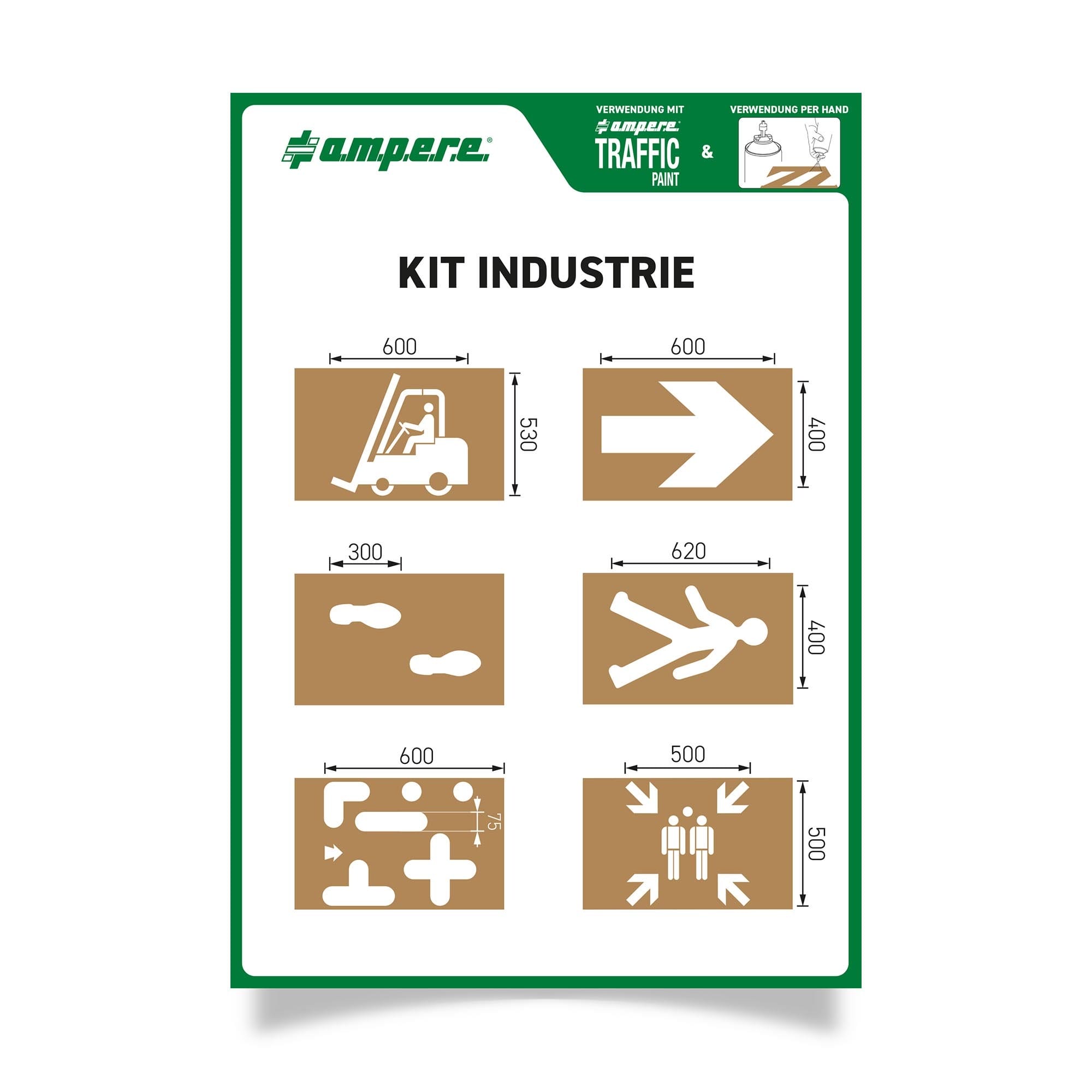 Infolgedessen eignet sich das Schablonen KIT Industrie ideal für industrielle Bodenmarkierungen auf Firmengeländen, Parkplatzbereichen, Zufahrten oder Sicherheitszonen.