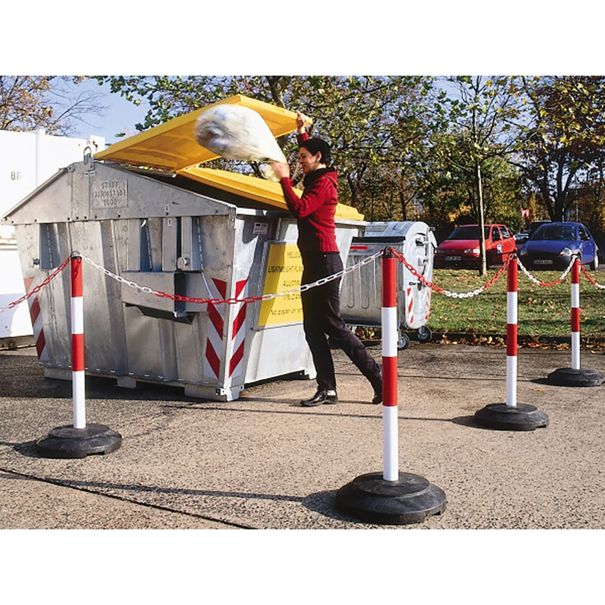 Schwerer Ketten-Warnständer aus Stahl, feuerverzinkt und kunststoffbeschichtet