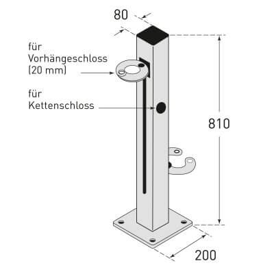 Bitte beachten Sie, dass dieses Modell zur Befestigung mittels Aufdübeln auf einem festen, ebenen Untergrund (z.B. Betonfundament, Pflaster) konzipiert ist. Daher ist das benötigte Befestigungsmaterial nicht im Lieferumfang enthalten. Somit muss es entsprechend der Bodenbeschaffenheit gewählt werden. Alternativ: Falls eine Installation durch Einbetonieren gewünscht ist, ist darüber hinaus ein separates Bodenrohr erforderlich, das zusätzlich bestellt werden muss.