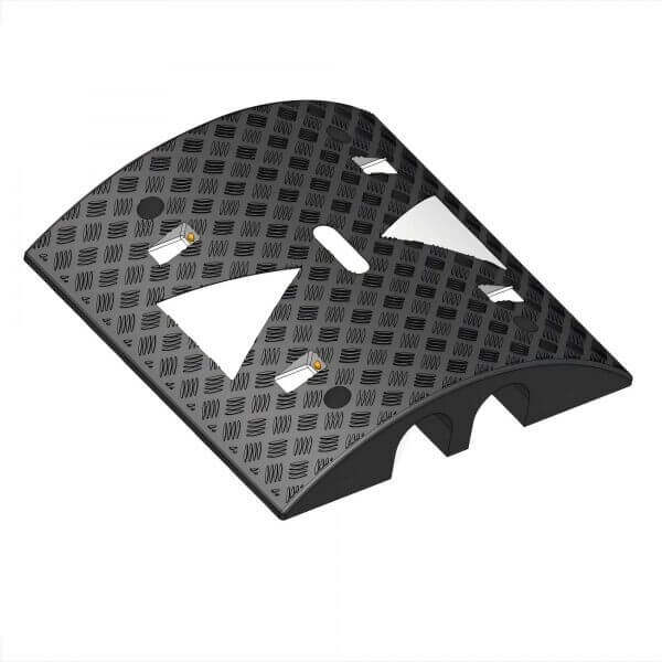 Die MORION Kabelbrücke XL wurde speziell für härteste Ansprüche entwickelt und schützt effektiv Rohre, Schläuche und Kabel mit einem Durchmesser von 60 bzw. 80 mm vor Schäden durch Schwerlastfahrzeuge. Die robuste Hartgummi-Mischung mit rutschfester Oberfläche und weißen Pfeilmarkierungen sorgt für sicheren Halt und klare Verkehrsführung. Dank der modularen Bauweise lassen sich mehrere Elemente zuverlässig mittels H-Verbinder montieren. Für Endlosbauweise geeignet und somit flexibel an die Bedürfnisse vor Ort anpassbar.