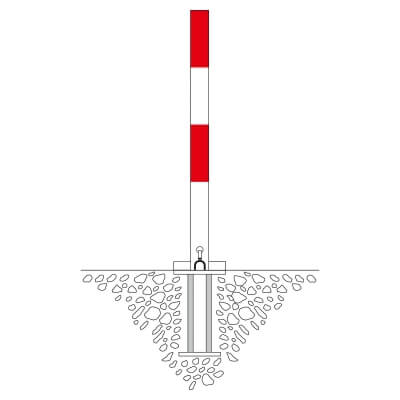 Im Gegensatz zu Modellen mit Bodenplatte wird dieser SESAM A Pfosten mittels einer mitgelieferten Bodenhülse fest im Untergrund einbetoniert. Mit einer Unterflurhöhe von 330 mm (Gesamtlänge 1.330 mm) erreicht der Pfosten eine enorme Standfestigkeit. Diese Montageart empfiehlt sich besonders für Standorte, an denen mit hoher Belastung durch rangierende Fahrzeuge zu rechnen ist oder eine dauerhafte, manipulationssichere Absperrung gefordert wird. Einmal fachgerecht einbetoniert, bildet der Pfosten eine unvoneinander trennbare Einheit mit dem Bodenfundament.