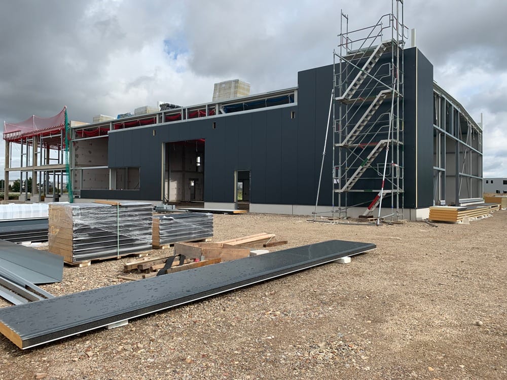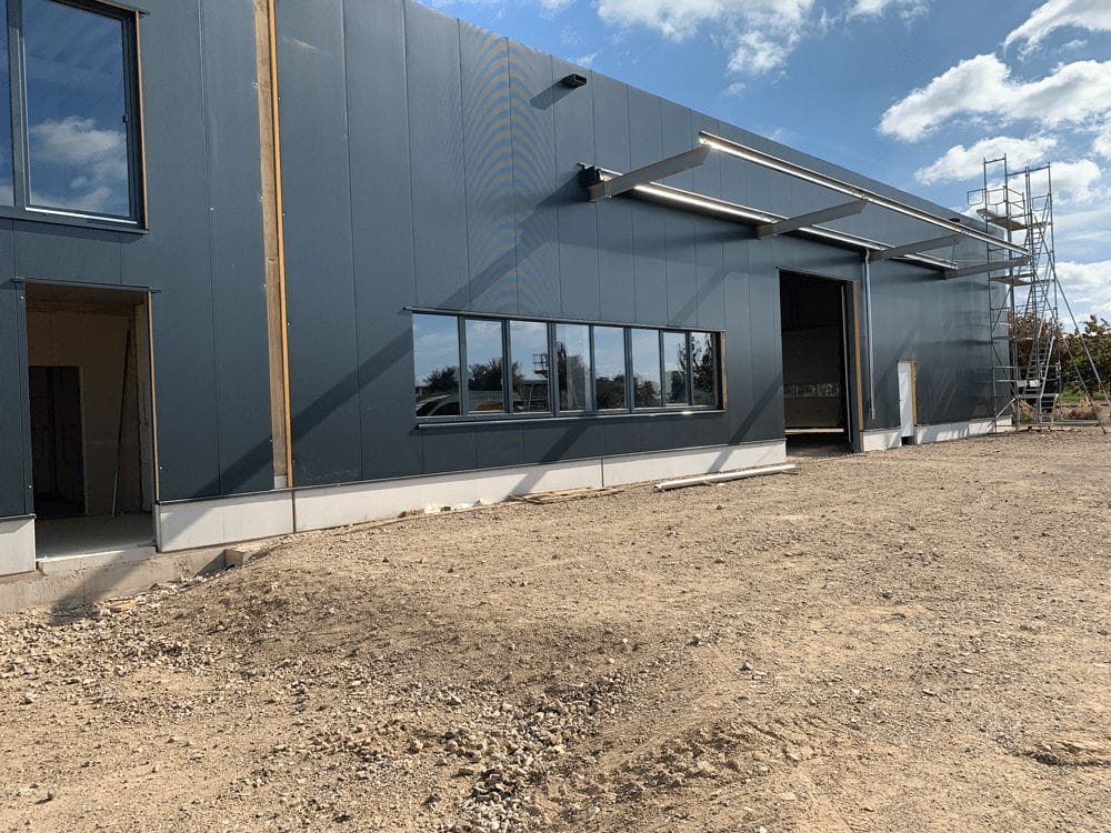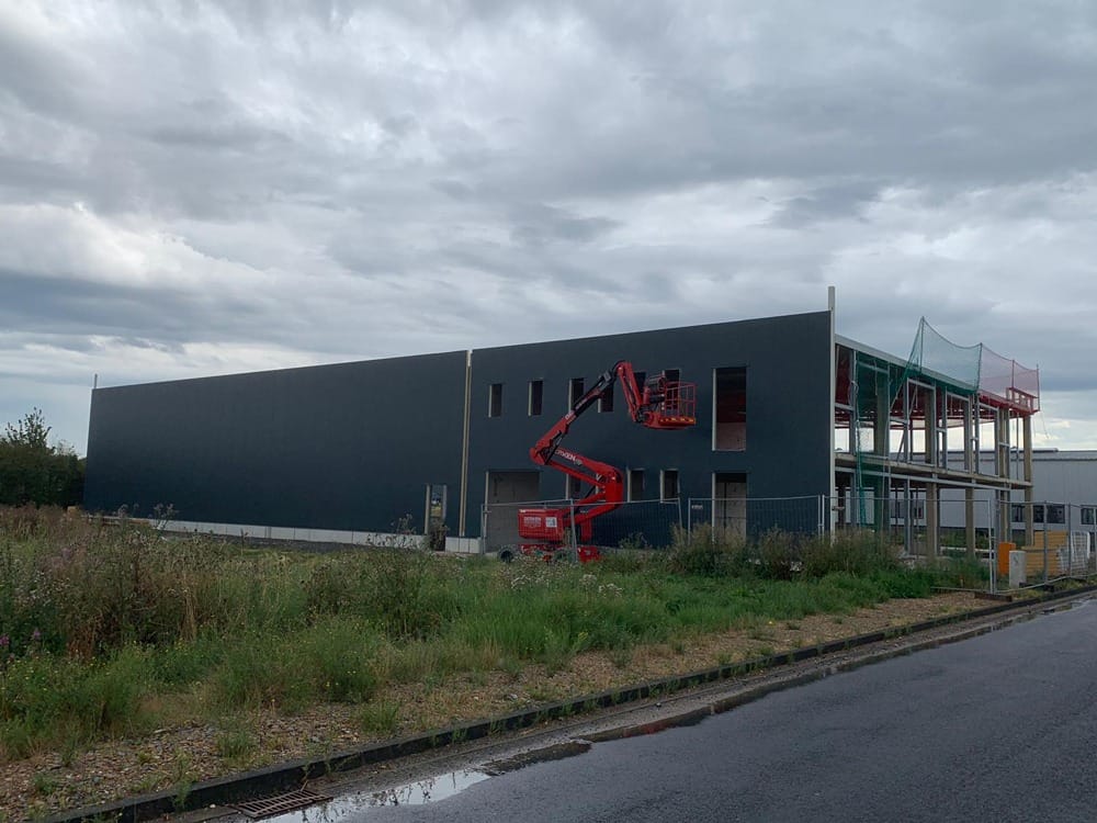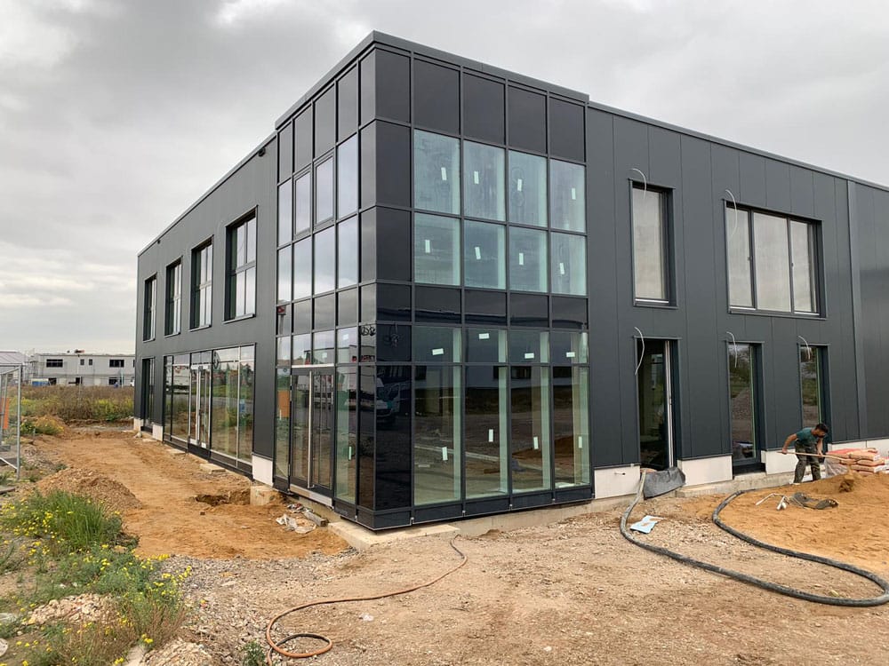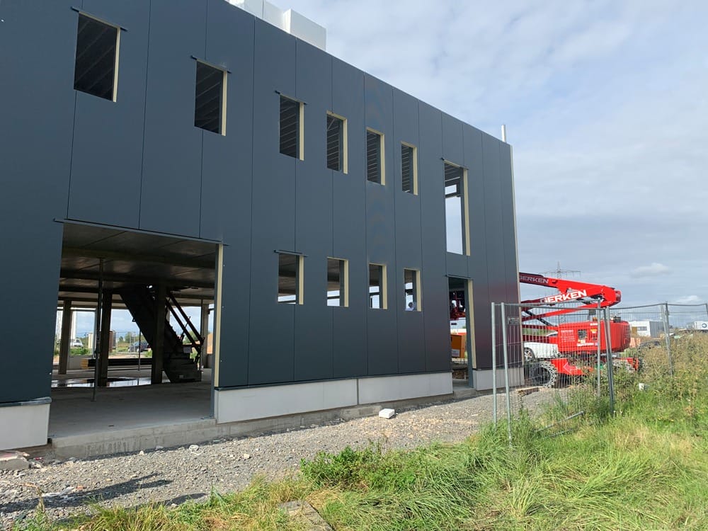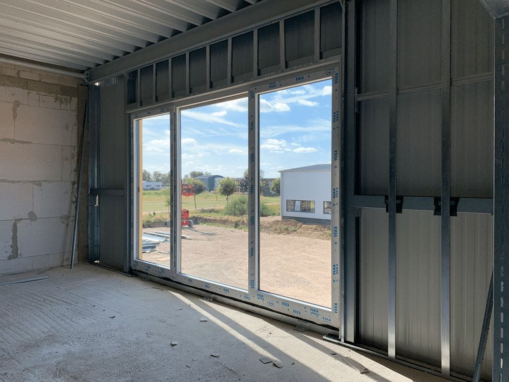 Ende des Monats August began der Einbau der Türen, Tore und Fenster in der Lagerhalle. Nun werden ebenfalls die Fenster im Bürobereich montiert.