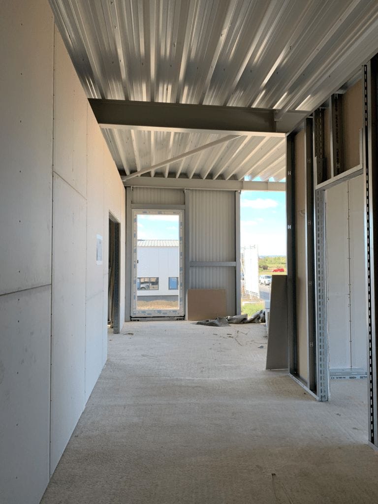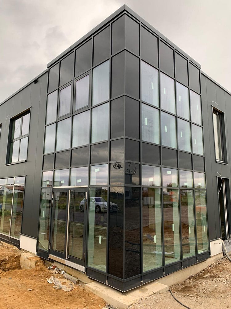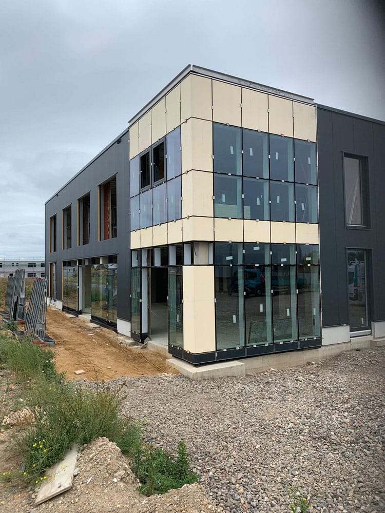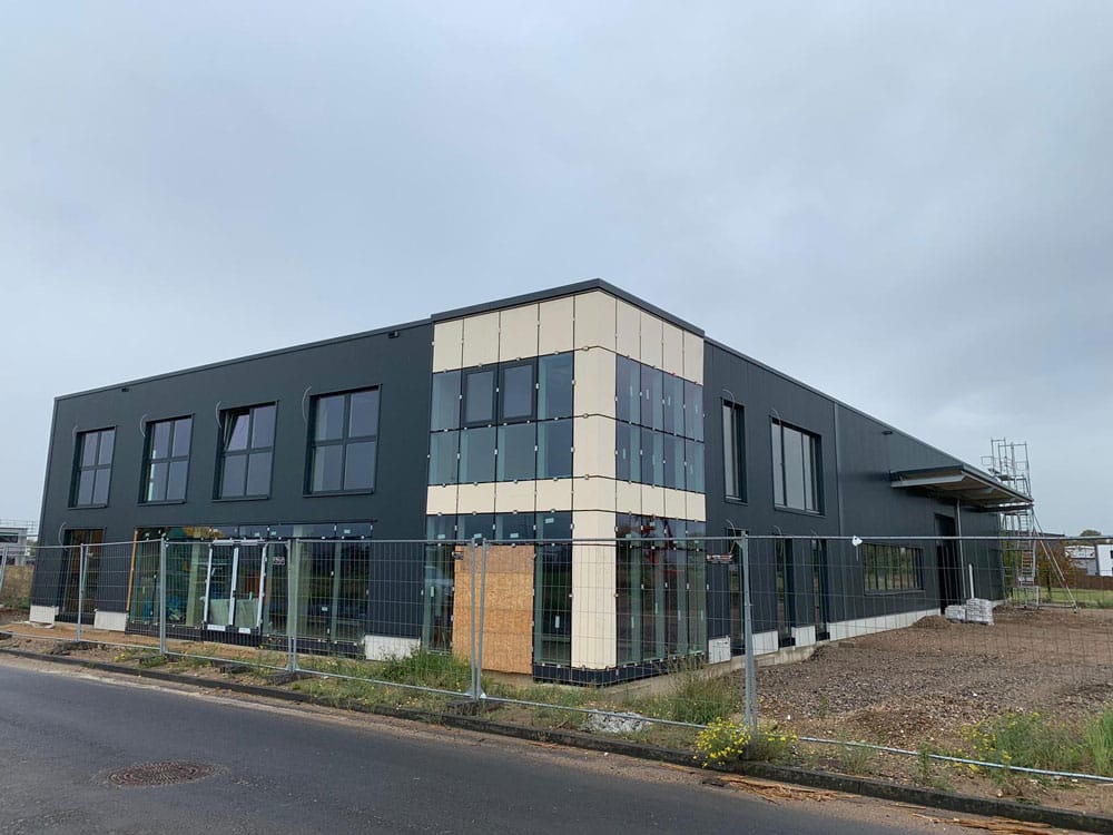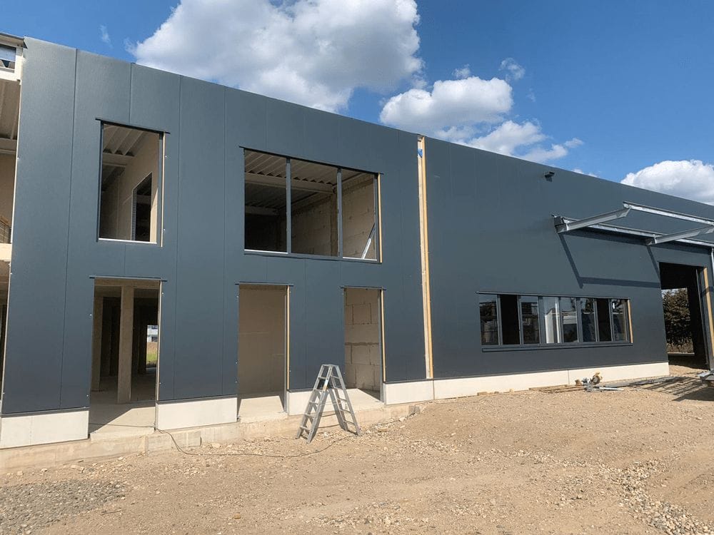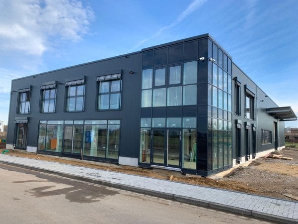 Ende des Monats August began der Einbau der Türen, Tore und Fenster in der Lagerhalle. Nun werden ebenfalls die Fenster im Bürobereich montiert.