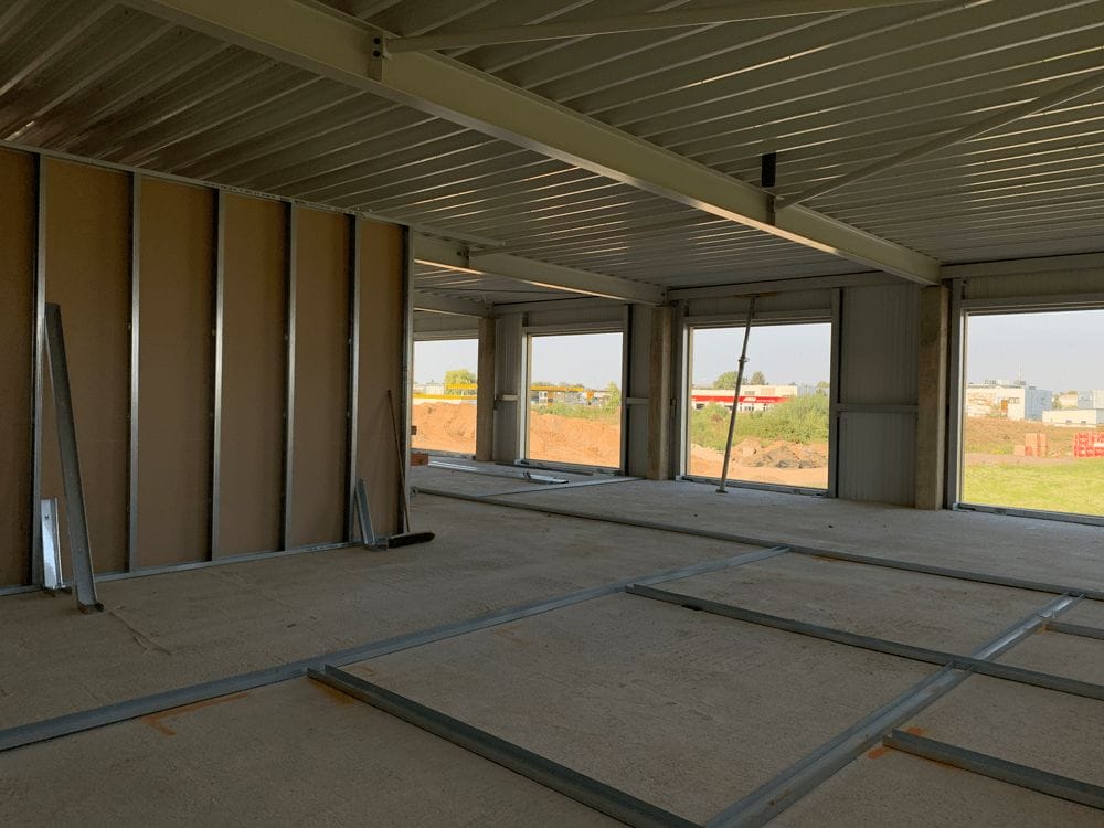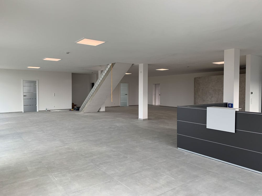 Zeitgleich startete der Innenausbau der Büroräumlichkeiten. Jetzt zeigt nicht nur die Lagerhalle ihren räumlichen Wachstum gegenüber unserem jetzigen Standort. Auch der Ausstellungsbereich, die einzelnen Büroflächen und besonders der großzügig geplante Schulungsraum von 100m² offenbaren, welche Dimensionen unser neuer Firmensitz gewinnt.