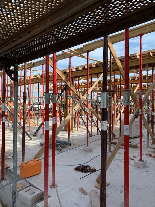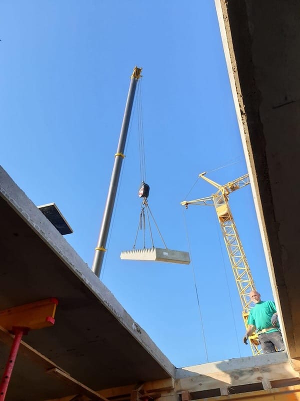 Nachdem die Filigrandecke gelegt und weitere Arbeiten daran durchgeführt wurden, erfolgten diese Woche die Bewehrungsarbeiten für die Zwischendecke. Diese wurde durch den Prüfstatiker überprüft, damit im Anschluss die Betonage der Zwischendecke durchgeführt werden konnte.